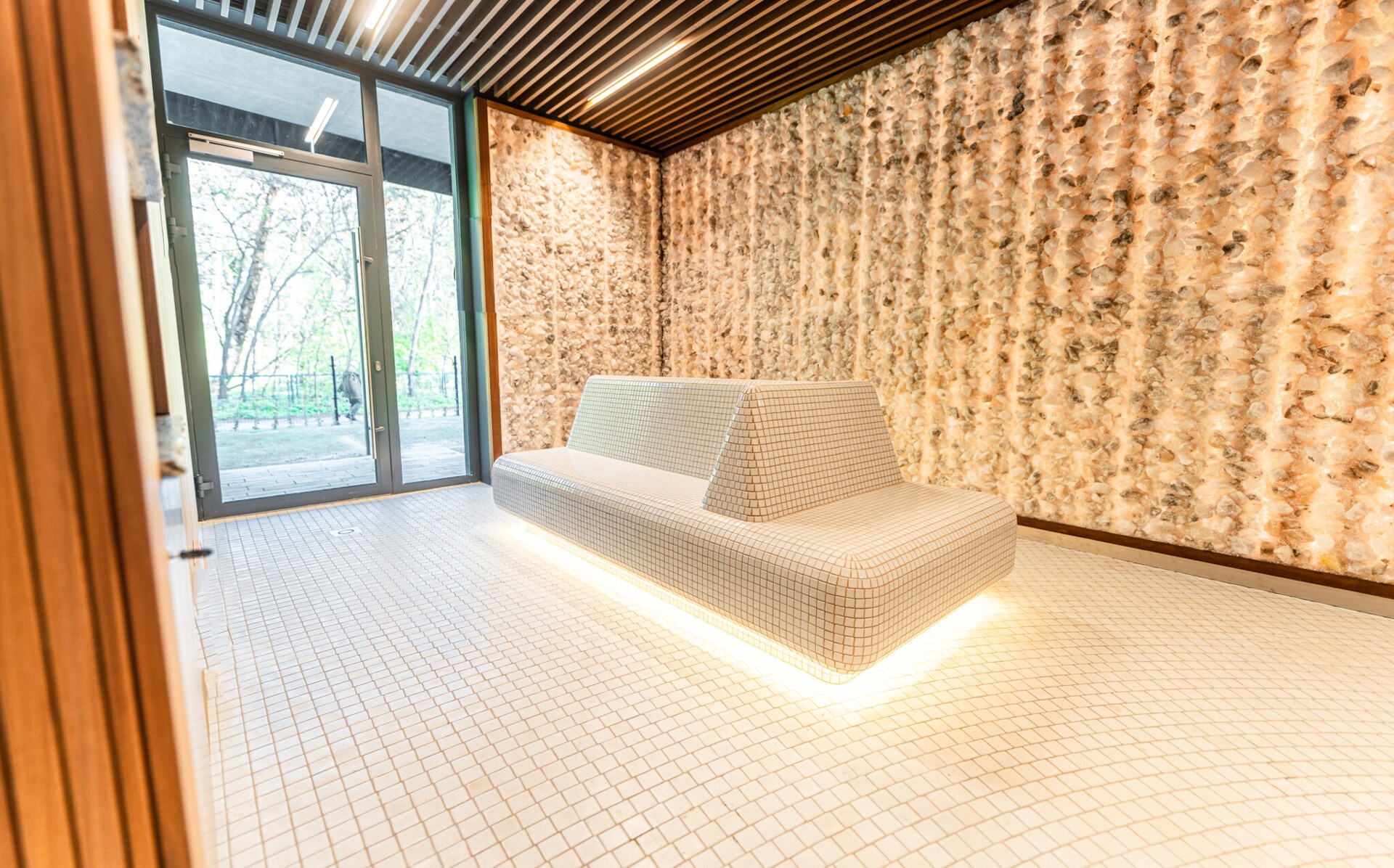 > Strefay wellness 3000 m²: kryty basen 200 m², strefa spa, łaźnia parowa, sauna, sauna fińska, sanarium, kabina na podczerwień, basen Kneippa, jacuzzi, grota solna, pokój relaksacyjny, strefa nagości. Masaże - płatne, salon kosmetyczny - płatne.
