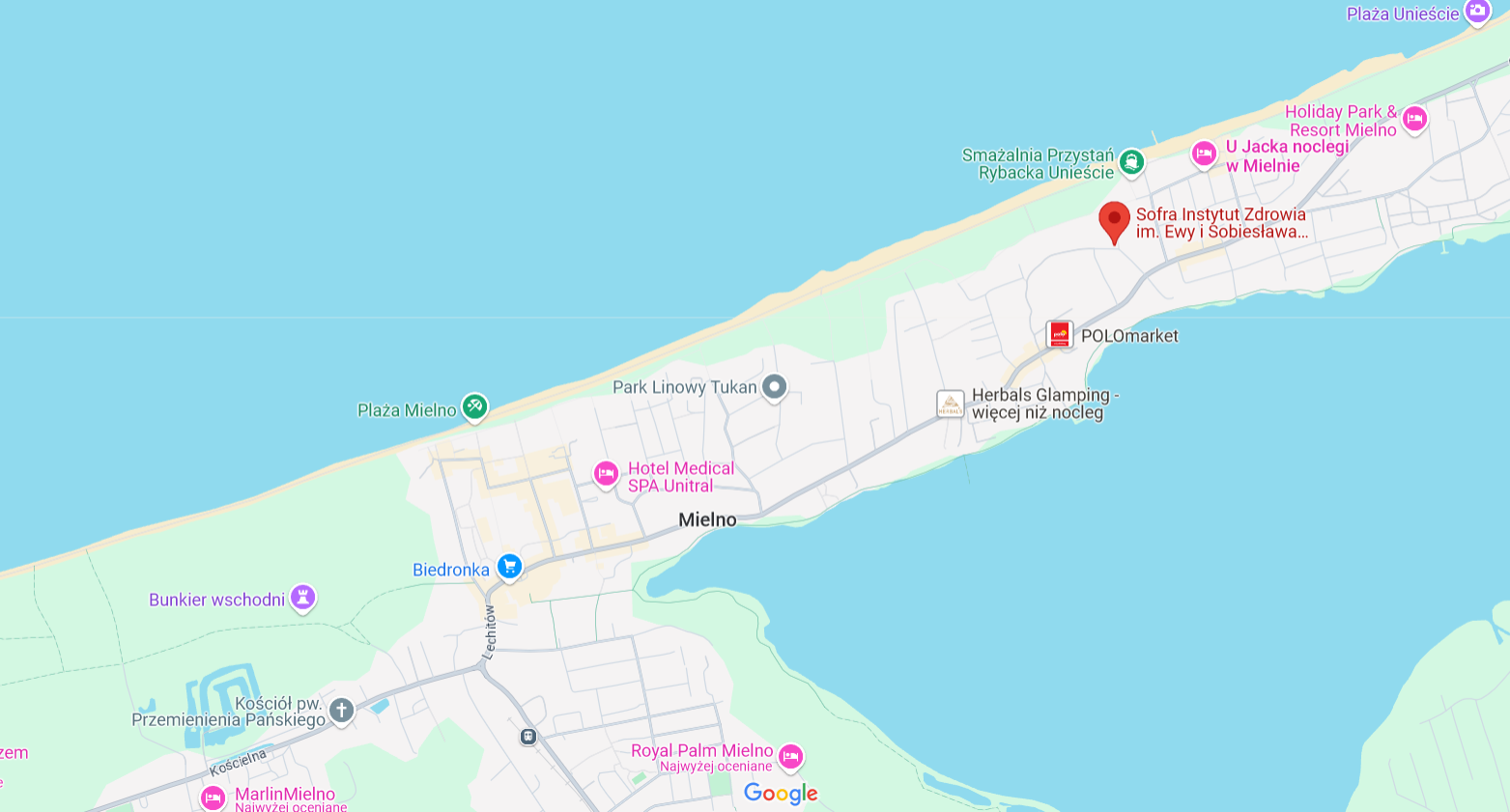 Ośrodek Instytutu Zdrowia Sofra położony jest w zacisznej, otoczonej zielenią okolicy Mielna. Dogodna lokalizacja sprzyja wypoczynkowi: piękna, piaszczysta plaża zachęca do plażowania, spacerów i uprawiania nordic walking, a nad pobliskim jeziorem można przez cały sezon uprawiać sporty wodne. Na terenie obiektu znajduje się profesjonalna infrastruktura sportowa, dzięki której aktywny urlop nad morzem może przynieść nie tylko zasłużony odpoczynek, ale i lepszą kondycję.